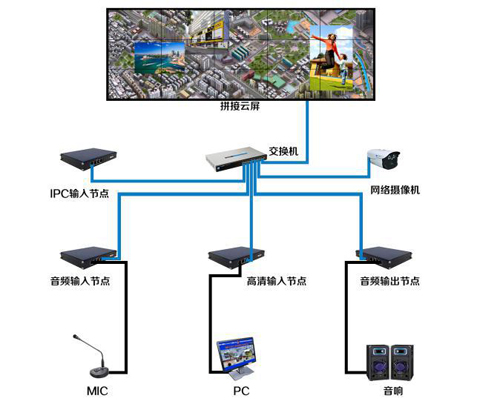 3、各種類型信號可通過網(wǎng)線傳輸,可同時顯示在不同地點(diǎn)的大屏幕上,使用靈活并具有成本低的優(yōu)勢