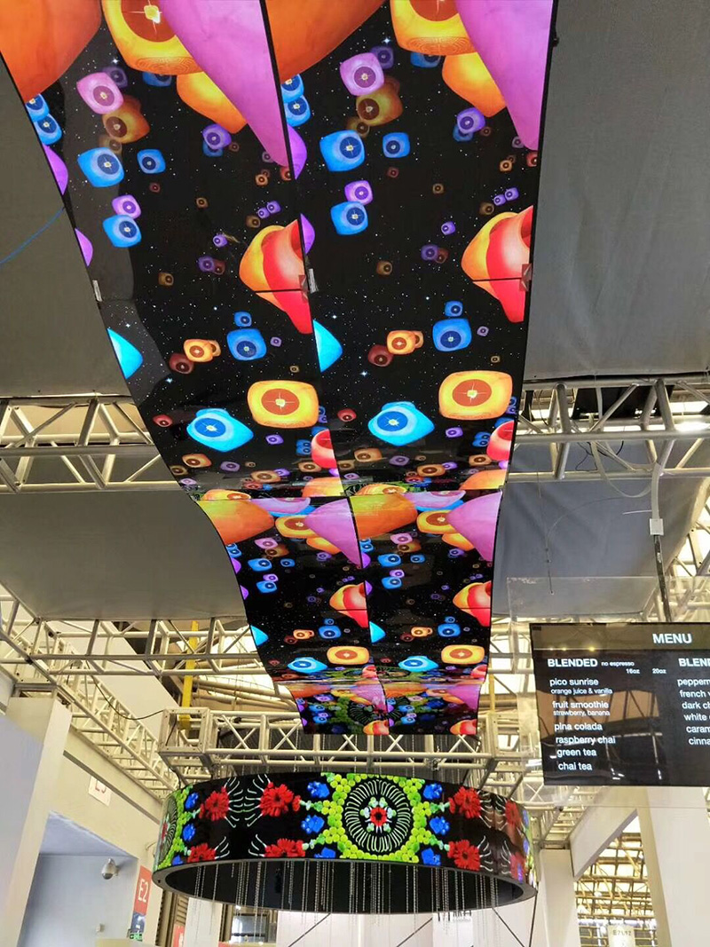 這款柔性開放型曲面拼接屏可拓展和可彎曲的性能使它可以被設(shè)計(jì)成各式各樣的造型,通過橫向或縱向的使用模式,配置為凸曲面或凹曲線亦或是平面拼接,都能輕松融合到任何公共或私人空間里,尤其是輕奢酒店品牌以及各類藝術(shù)場(chǎng)館、博物館等高端商業(yè)空間,帶來身臨其境的視覺體驗(yàn)。