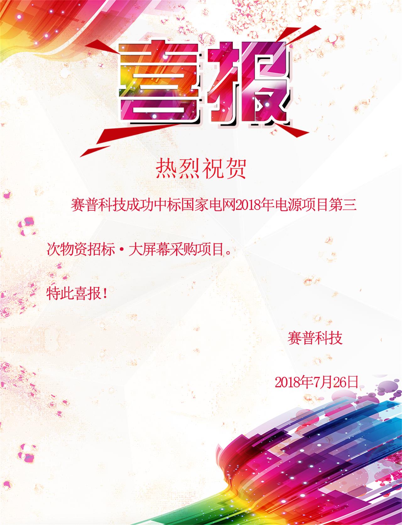2018年7月,賽普科技參與《國家電網(wǎng)2018年電源項目第三次物資招標(biāo)·大屏幕采購項目》,經(jīng)過多番的激烈競爭,最終以良好的信譽(yù)、豐富的行業(yè)經(jīng)驗、強(qiáng)大的技術(shù)實力以及優(yōu)秀的方案、合理的報價贏得了招標(biāo)單位的肯定,順利中標(biāo)。