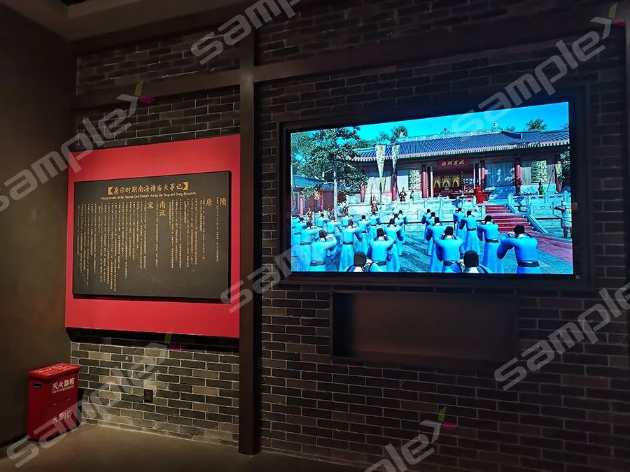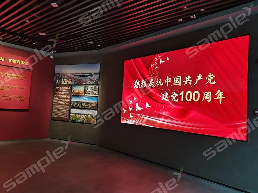走進(jìn)歷史的長(zhǎng)廊,迎面而來的是一面無縫拼接的COB小微間距顯示大屏,鮮紅的旗幟,與黨百年華誕的顯示畫面相當(dāng)益彰,采用像素級(jí)的點(diǎn)控技術(shù),從而實(shí)現(xiàn)對(duì)顯示屏像素單位的亮度、色彩的還原性和統(tǒng)一性的狀態(tài)管控。相對(duì)于普通的SMD來說,這款COB小微間距顯示屏不僅采用獨(dú)家的安全環(huán)保光學(xué)濾鏡技術(shù),有效緩解顆粒感,減少屏幕長(zhǎng)時(shí)間觀看產(chǎn)生的炫目和刺痛感,還可以自動(dòng)過濾掉紫外線和有害波長(zhǎng)的藍(lán)光,使得眼睛不會(huì)受到傷害,同時(shí),在節(jié)能環(huán)保方面,也是采用了共陰極LED驅(qū)動(dòng)技術(shù),大大降低能效,使得屏幕表面溫度大幅度降低,相對(duì)于整天處于室內(nèi)封閉環(huán)境的博物館來說,無疑是當(dāng)前高分顯示的不二之選。其中,絢麗多彩的畫面展示與視頻講解讓參觀者身臨其境,充分感知?dú)v史的溫度與精神。