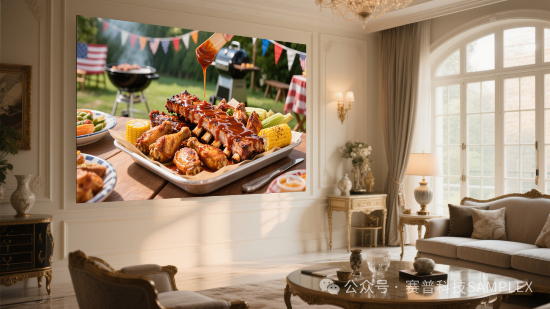 傳統(tǒng)家庭影院總在 “畫質(zhì)” 和 “空間” 里做妥協(xié):要么是厚重的電視邊框割裂沉浸感,要么是拼接屏的縫隙毀掉電影構(gòu)圖。賽普毫米級超薄機(jī)身打破困局,像貼海報般把屏幕貼在墻面,關(guān)機(jī)時連挑剔的設(shè)計師都找不到它的存在。