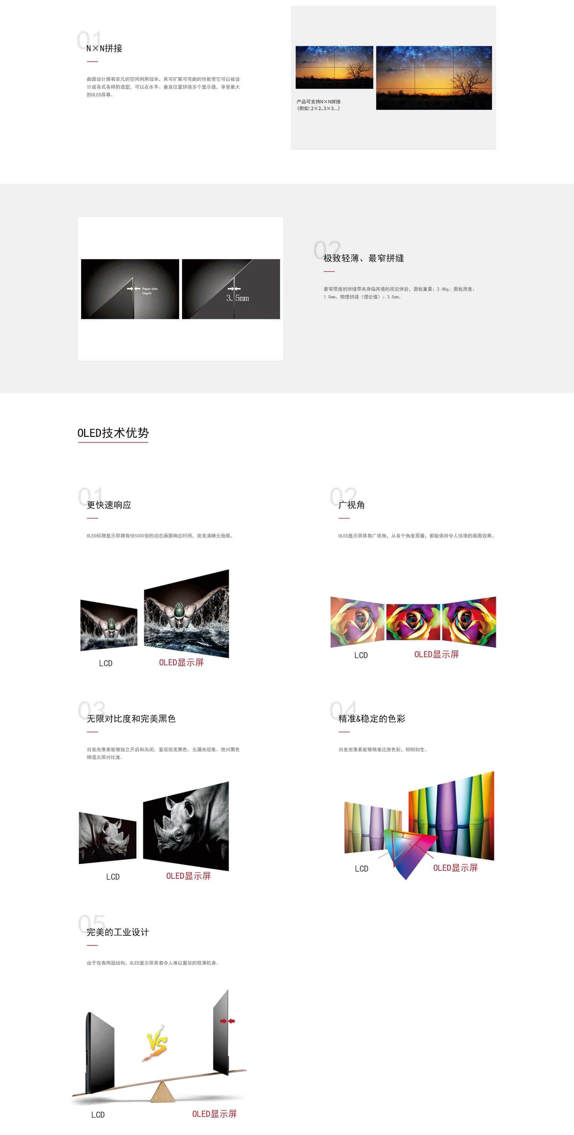 OLED自發(fā)光像素技術 | 1mm纖薄屏幕,窄邊拼接 | 曲面創(chuàng)意造型,帶來身臨其境的視覺震撼效果