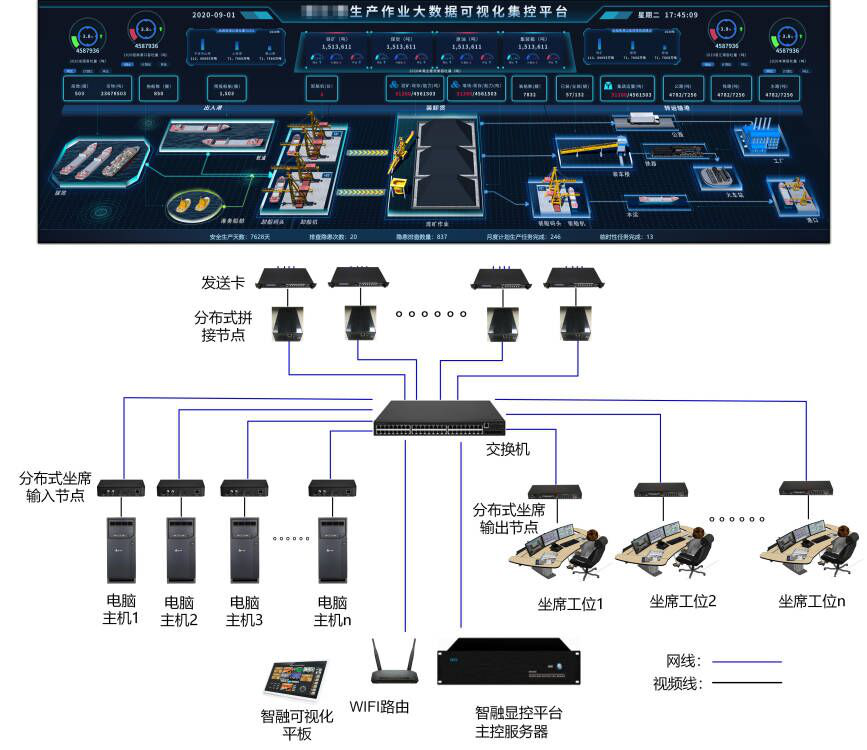 港口作為交通運(yùn)輸?shù)臉屑~,在促進(jìn)國(guó)際貿(mào)易和地區(qū)發(fā)展中起著舉足輕重的作用。在“工業(yè)4.0”、“互聯(lián)網(wǎng)+”大發(fā)展的時(shí)代背景下,從信息港到數(shù)字港,再到現(xiàn)今的智慧港口建設(shè),我國(guó)港口已進(jìn)入關(guān)鍵的數(shù)字化轉(zhuǎn)型升級(jí)時(shí)期。作為高清數(shù)字化顯示系統(tǒng)整體解決方案領(lǐng)導(dǎo)者,賽普科技將大屏顯示系統(tǒng)、大數(shù)據(jù)、KVM坐席管理平臺(tái)、智·融顯控可視化管理平臺(tái),結(jié)合5G+8K、AI智能分布式系統(tǒng)、物聯(lián)網(wǎng)等信息技術(shù)與港口各領(lǐng)域深度融合,推出智慧港口解決方案,以推動(dòng)港口與供應(yīng)鏈上下游互聯(lián)互通,提升港口信息服務(wù)與業(yè)務(wù)創(chuàng)新能力,助力港口轉(zhuǎn)型升級(jí)與提質(zhì)增效,為智慧調(diào)度指揮中心的建設(shè)奠定了基礎(chǔ)。